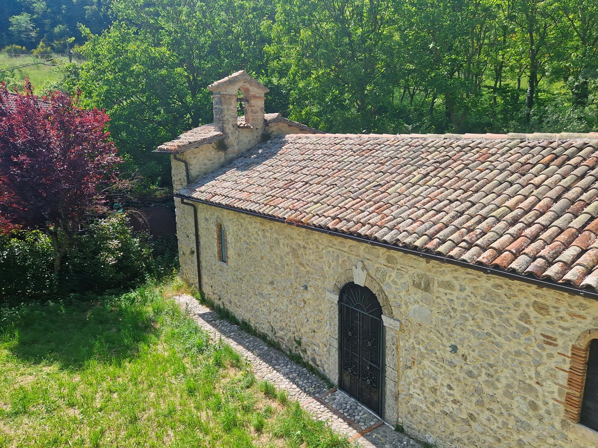 Tornati sul percorso principale, continuiamo lungo i 2,5 km di strada bianca che conducono alla località Trampani, dove possiamo riempire le borracce e poi deviare sinistra seguendo le indicazioni per l’abbazia di San Salvatore Maggiore. Giunti in vista di Longone Sabino, prima ci affacciamo al Conventino, un’antica struttura del XII secolo edificata dai francescani, oggi privata, e poco più avanti suggeriamo la deviazione verso l’abbazia (TRACCIA : https://out.ac/IeWZJk sentiero 375B 1,5 km – 25′ solo andata): un vero tesoro del territorio che va vista con i propri occhi! Tornati sui nostri passi, entriamo nel borgo di Longone Sabino, di origine longobarda del VI secolo, dove è possibile usufruire della stupenda ospitalità presso la bottega di Vera e Maria, visitare ‘U Cinemittu – il cinema più piccolo d’Italia – o pernottare nel nuovissimo ostello gestito da La Biblioteca Verde