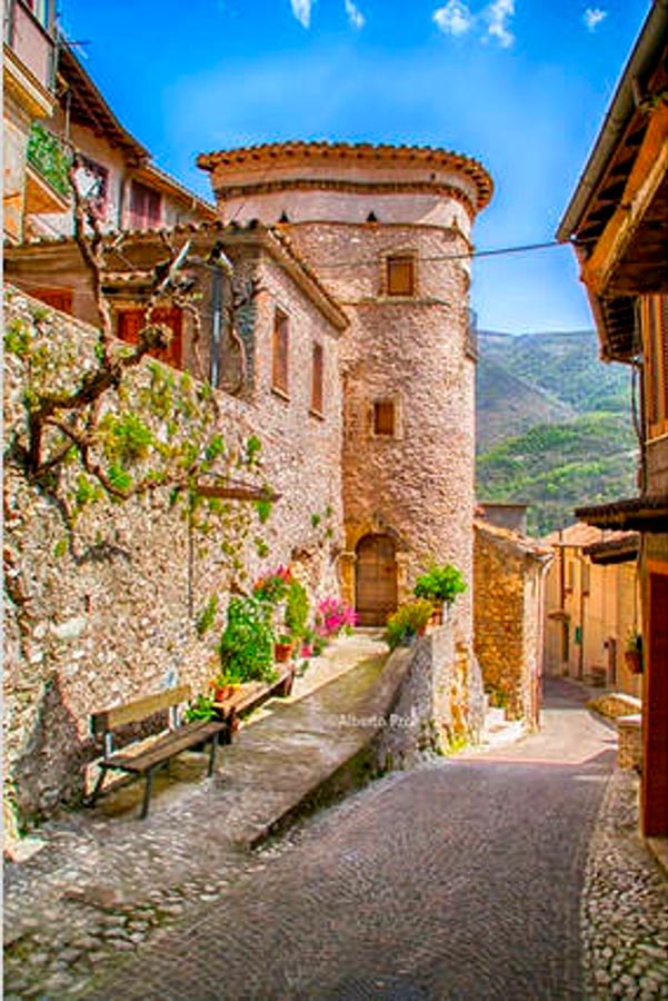 Usciamo dal paese e proseguiamo sulla poco frequentata SP33 per 4,5 km fino ad arrivare a Stipes: qui consigliamo una visita al centro storico, con palazzo Turchetti e i resti della rocca medievale, prima di riprendere il cammino sul sentiero 321 alla nostra sinistra, direzione Vallecupola. Dopo circa 500mt, invece di proseguire a sinistra in salita, tiriamo dritto verso lago del Turano-Castel di Tora, da qui in poi la strada è tutta in discesa. Attraversiamo l’incrocio con la strada asfaltata e proseguiamo scendendo la strada cementata e, poco prima di arrivare a Castel di Tora, quando saremo accanto all’agriturismo, possiamo visitare con una breve deviazione la Cascata delle Vallocchie, ideale per una sosta rinfrescante nelle giornate più calde. Ripresa la strada in discesa, dopo solo 10′ siamo alle pendici del borgo.
